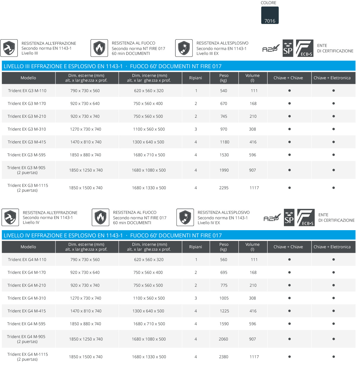 Almeno una serratura EN 1300 grado B deve essere installata di serie. Una seconda serratura può essere aggiunta su richiesta del cliente.